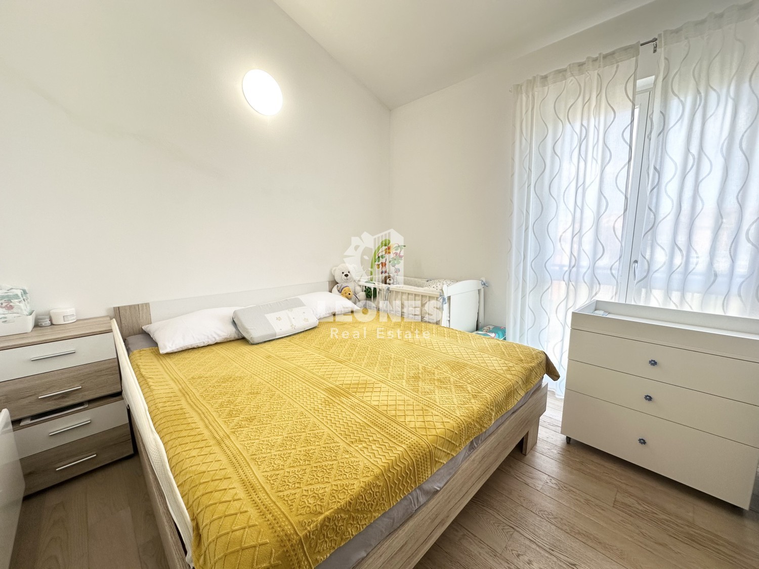 Die Wohnung ist nach Süden ausgerichtet und große Fenster sorgen den ganzen Tag über für viel natürliches Licht.