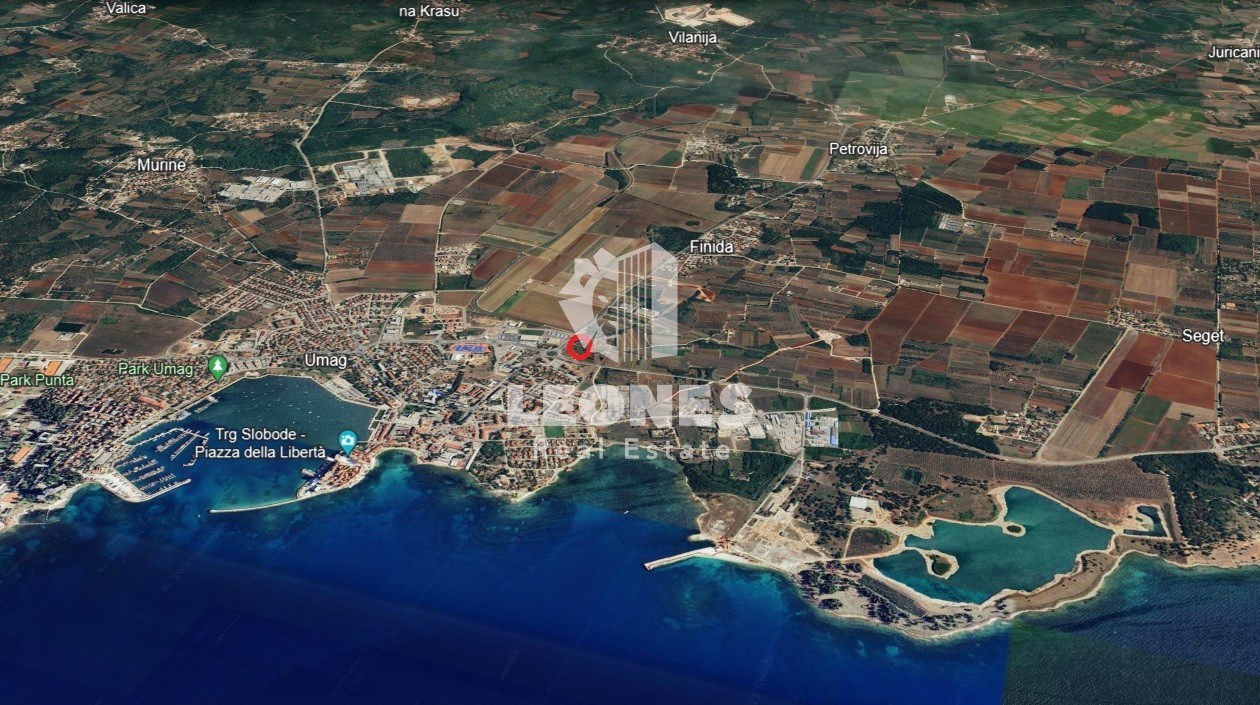 Commercial building land for sale (trade and hospitality) in Umag. The land area is 617 m2. It is located near all facilities and only 600 m from the city center and the sea.