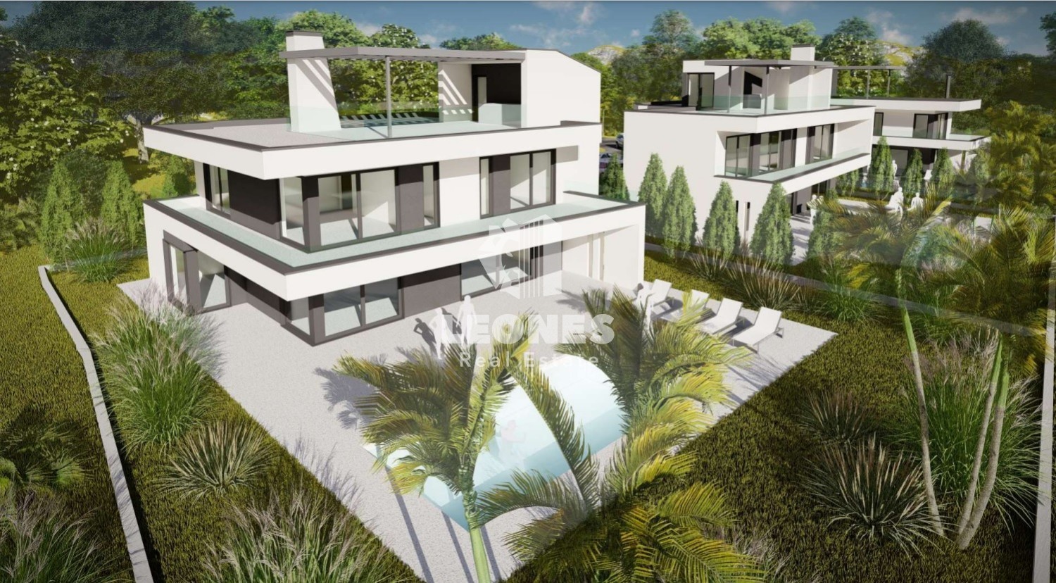Prodaje se impresivna vila s bazenom i pogledom na more u okolici Poreča. Vila se nalazi U turističnom gradiću nedaleko od Poreča te raspolaže svim sadržajima. Neto korisna površina vile je 291 m2 dok je površina zemljišta 676 m2. Proteže se na tri etaže. Prizemlje vile sastoji se od velikog open space prostara gdje su smješteni dnevni boravka sa kaminom te blagovaonica i kuhinja. Također u prizemlju se nalaze wc, praona, radna soba i wellness zona sa saunom. Dnevni boravak ima direktni pristup na veliku natkrivenu terasu, bazen sa sunčalištem i ograđeno zemljište.