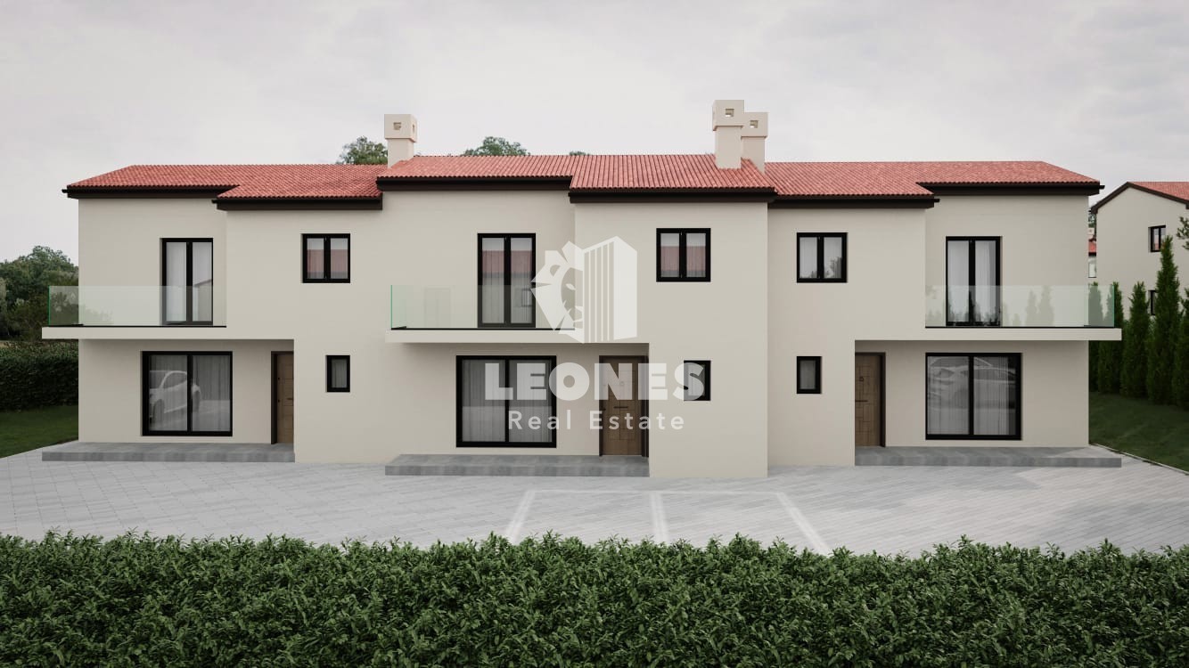 Prodaje se kuća u nizu s bazenom u blizini Buja. Neto površina kuće je 102 m2 dok je površina okućnice oko 200 m2. U prizemlju se nalaze kupatilo, ostava, tehnička soba, kuhinja s blagovaonom i dnevni boravak koji ima izlaz na terasu. Na katu su smještene 3 spavaće sobe, kupatilo i wc.