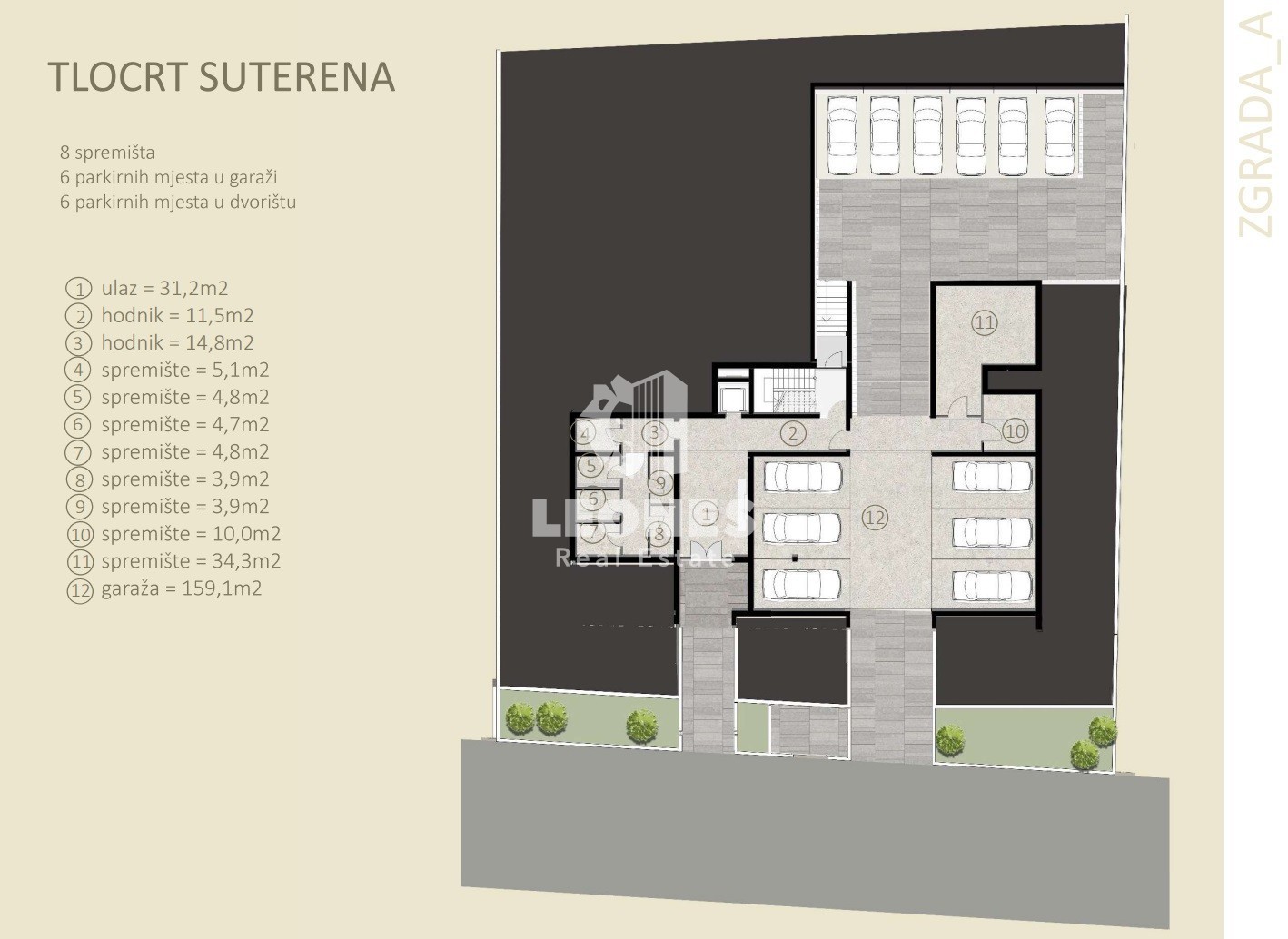 Garažna i parkirna mjesta imati će glavnu ulaznu rampu s elektromotorom na daljinsko upravljanje kao i pripremu za punjače za električna vozila, video nadzor i video parlafon.