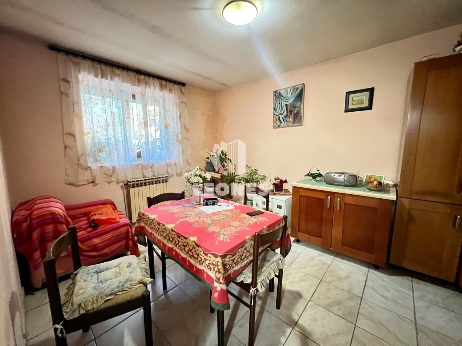 Nel pieno centro di Buie è in vendita una casa con cortile, che si estende su due piani ed è composta da un ingresso situato al piano terra. Nell'ampliamento, le scale conducono al primo piano, dove si trovano un soggiorno, una zona cucina con sala da pranzo, un ripostiglio e due camere da letto.