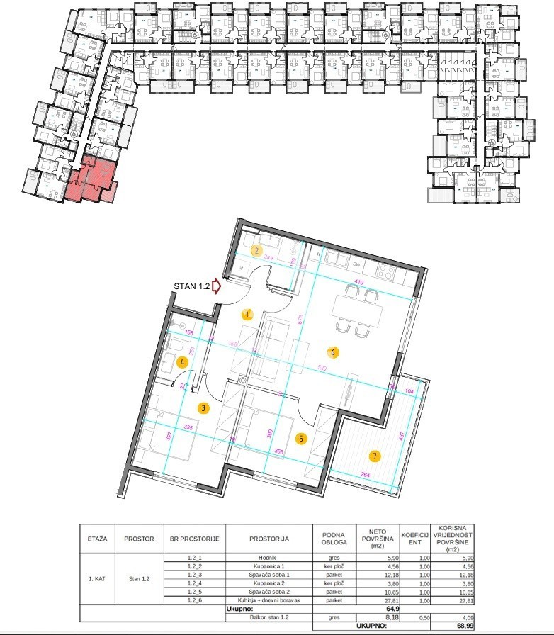 In vendita un appartamento in un moderno edificio di nuova costruzione con due posti auto a Umago. La superficie netta utile dell'appartamento è di 70 m². L'appartamento si trova al primo piano di un edificio residenziale ed è composto da soggiorno e cucina, 2 camere da letto, 2 bagni e terrazza. Dispone di un ripostiglio di 3,15 m², un posto auto in garage e un posto auto esterno.